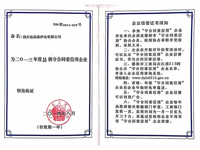 四川省焱森爐業(yè)有限公司注冊資金1200萬元,生產(chǎn)車間近1萬平方米,是一家集生物質(zhì)爐研發(fā)、設計、生產(chǎn)、銷售、服務、技術咨詢于一體的國家高新技術企業(yè)。公司技術力量雄厚,生產(chǎn)設備齊全,工人技術熟練,所有產(chǎn)品嚴格按照國家相關標準及ISO9001:2008質(zhì)量管理體系實行模具化、規(guī)范化生產(chǎn),年產(chǎn)能力達15萬臺以上。公司擁有建全的14001環(huán)境體系認證及18001職業(yè)健康安全體系認證。我公司擁有自己的知識產(chǎn)權及自主品牌“焱森”,是國家高新技術企業(yè),擁有54項專利。